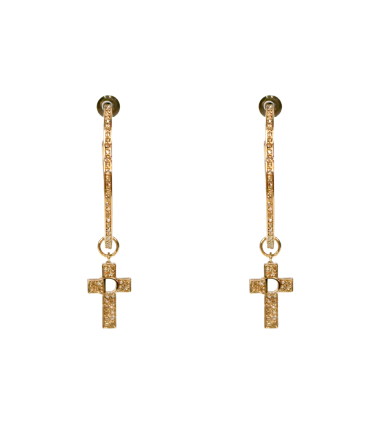 디올 큐빅 D 십자가 골드 링 귀걸이