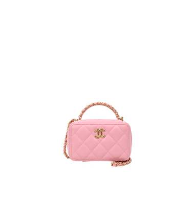 샤넬 핑크 램스킨 탑핸들 코스메틱 크로스백