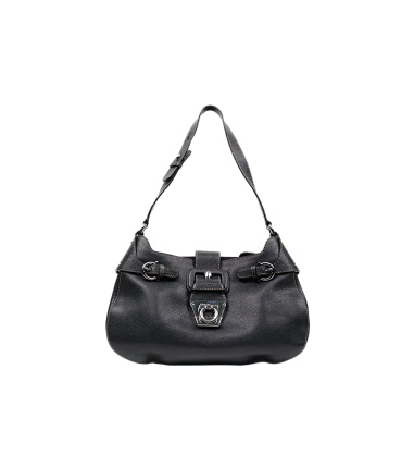 페라가모 블랙 레더 간치니 숄더백